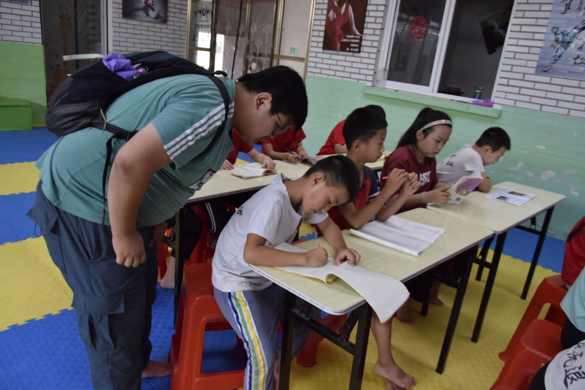 上午9时,“衡乡”社会实践团体来到半壁店村。之后成员们监督孩子们训练。下午,成员们帮助孩子们解决暑期作业中存在的问题,陪伴孩子们度过美好的暑期生活,并在朋友圈内进行了线上宣传让更多人看到这一群需要帮助的孩子们。