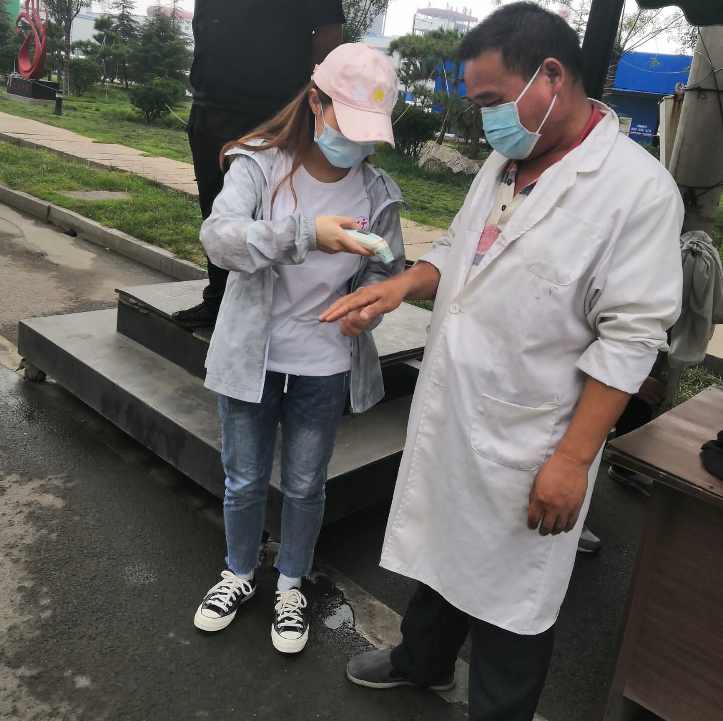 李慧瑶同学的实践任务是在一线帮助工人测量体温,协助值班人员做好体温测量与记录,严格把控外来人员进入并做好防疫宣传。在实践过程中,严格遵守企业防疫规定与程序,把职工的生命安全放在第一位,为莱芜区的复工复产献出自己的一份力量。