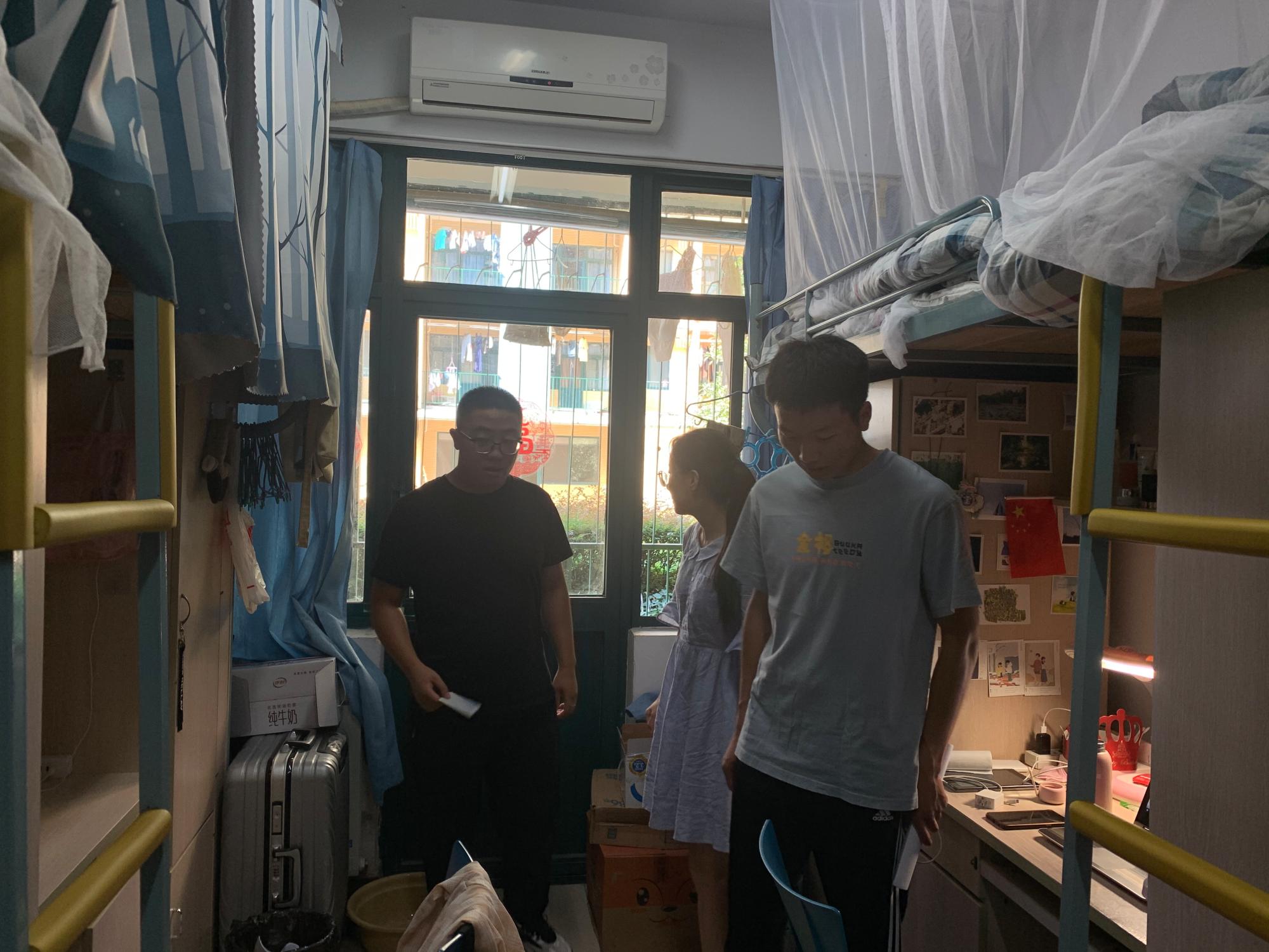 于竹三开展了卫生检查工作。19级辅导员苏辉老师、18级辅导员何军老师以及兼职辅导员刘莞毓老师和程小婉老师参与此次检查。