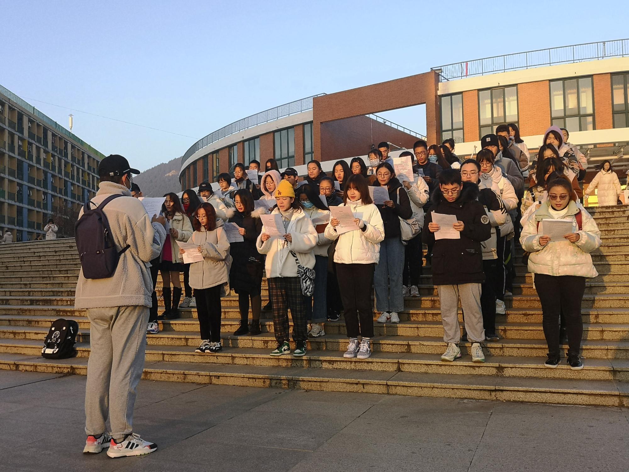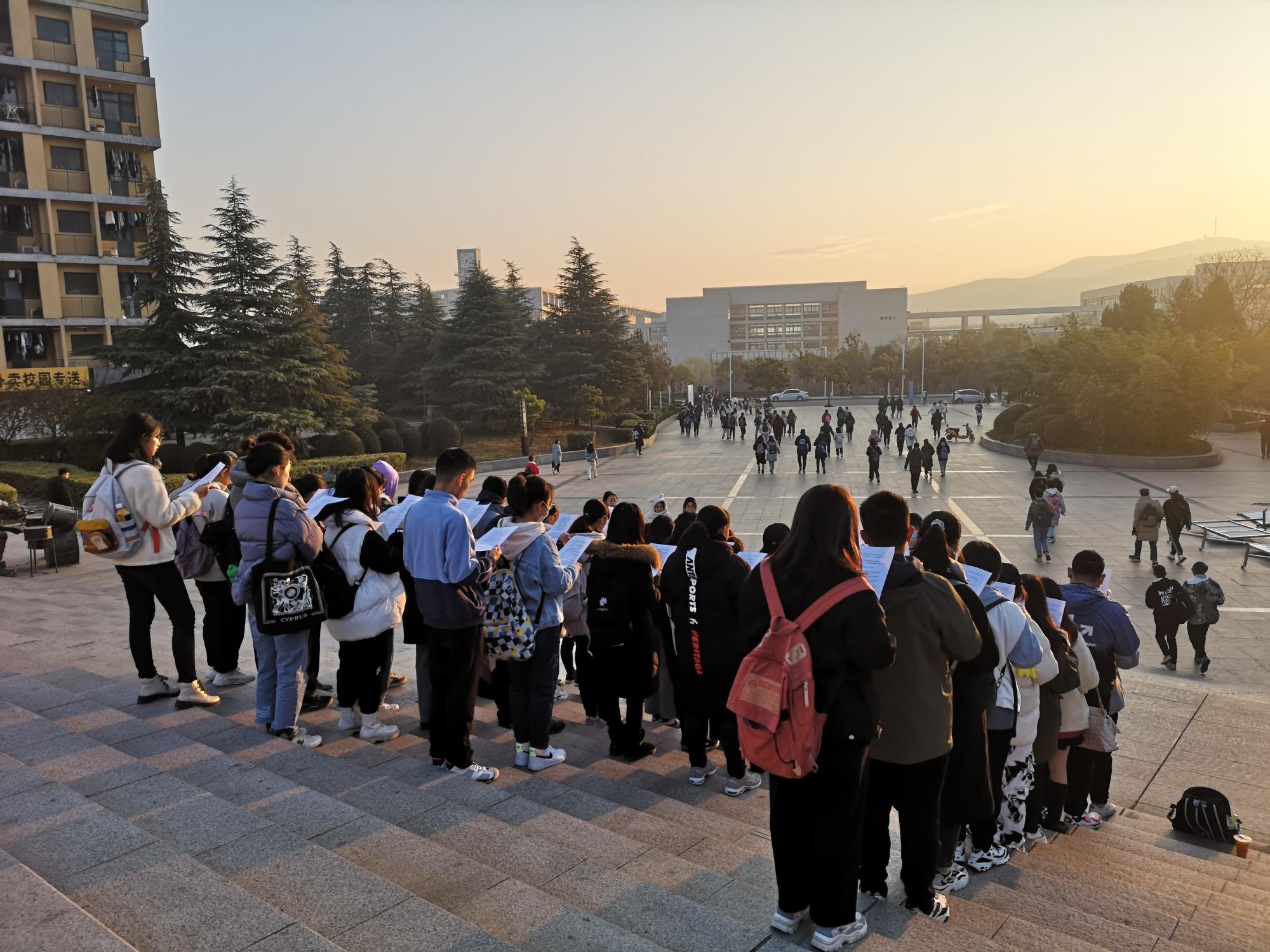 宪法晨读活动定于12月4日早晨7时30分举行。为了展示更好的晨读状态,12月3日22时,参与晨读活动的同学们提前在二食堂广场进行了一次模拟排练。12月4日早,同学们准时在无码av