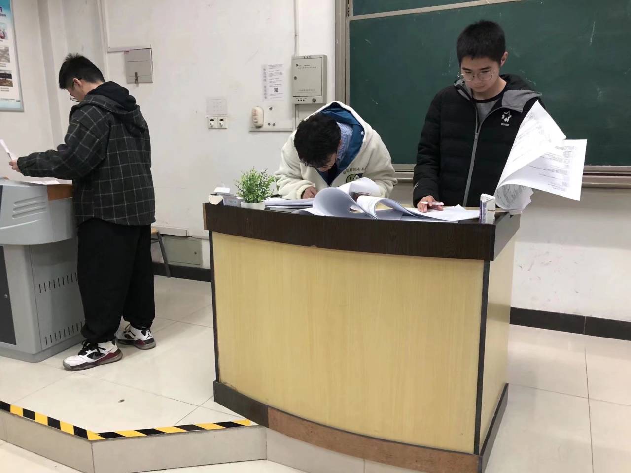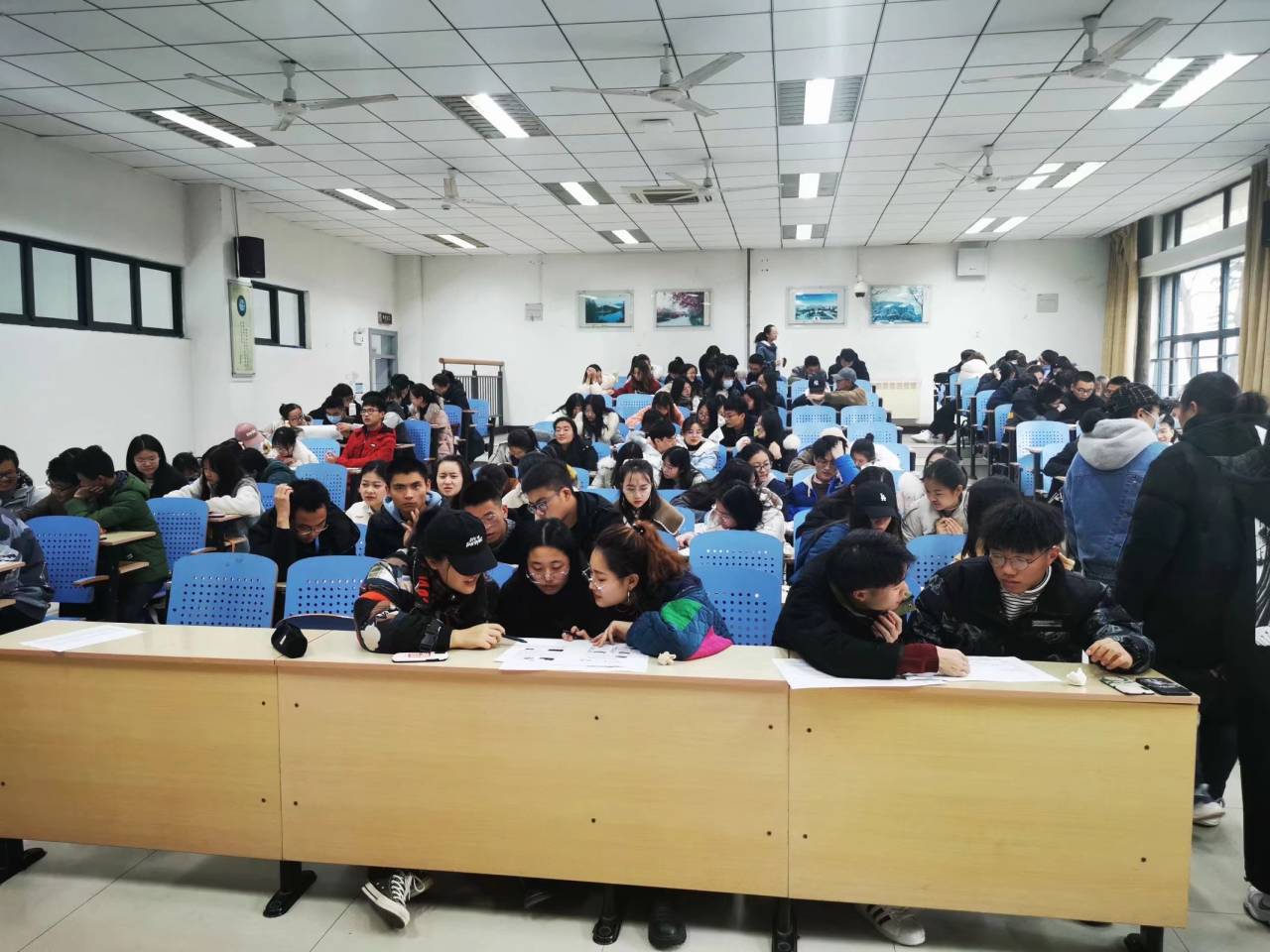 在监考员的监考下,答题现场井然有序。考试结束后,工作人员收回试卷并进行批改、统计分数,决出决赛名单。