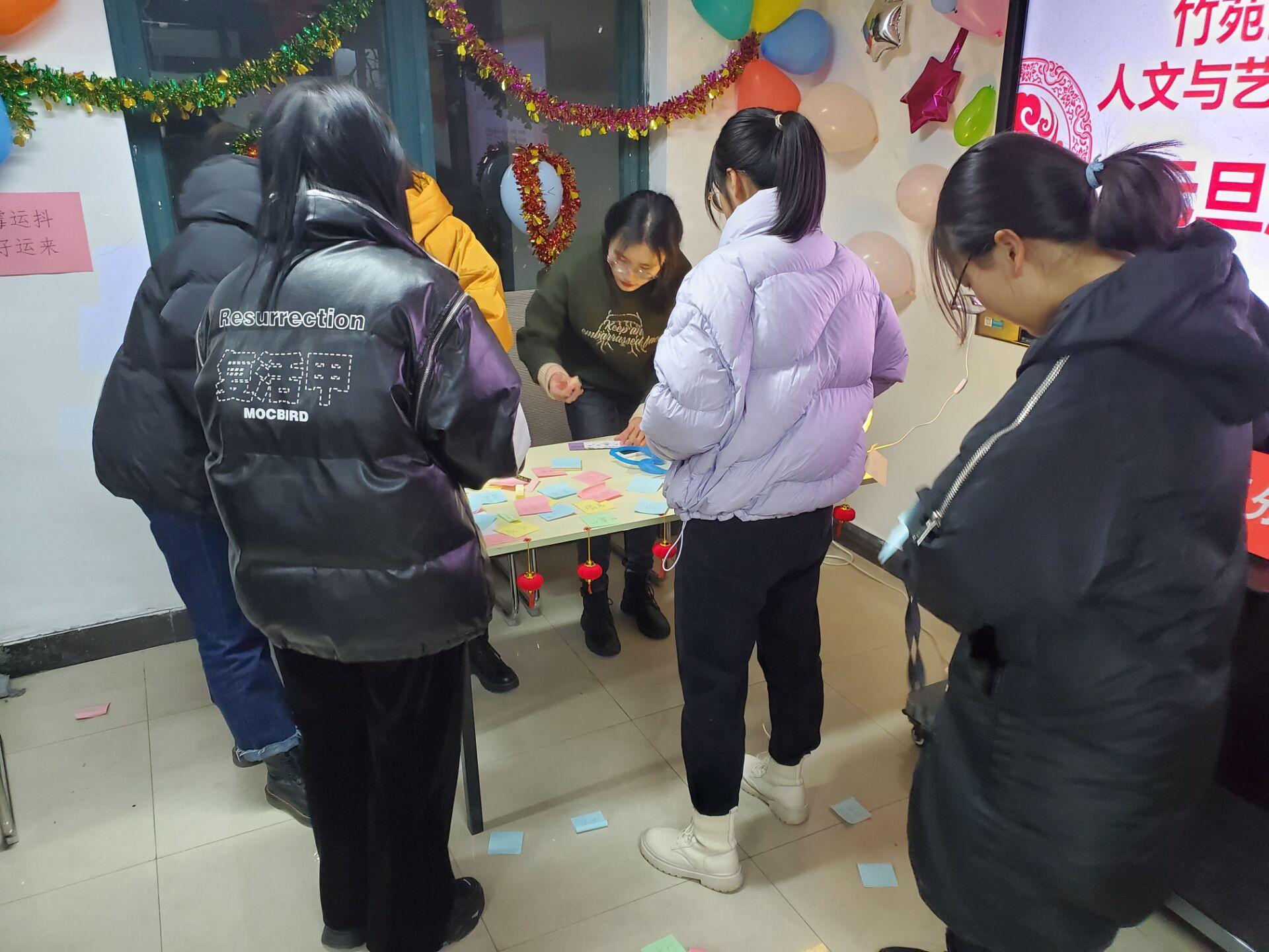 游艺宫现场为大家设置了“你画我猜”、“霉运抖,好运来”、“‘球’得好运”、“Lucky Circle(幸运套圈)”、“鸿运当‘投’”、“Just Do It(且去游戏)”六个轻松活泼的趣味游戏。“你画我猜”作为考验默契的经典游戏,“一展画技”在令人捧腹大笑的同时增进了同学们的情谊;“Lucky Circle”与“鸿运当‘投’”虽然只是简单的套圈和扎气球游戏,但也蕴含着许多新年的美好祝愿;“‘球’得好运”的双笔夹球看似简单却也极富挑战性,同学们踊跃参与;“Just Do It”丰富多样的活动形式也让同学们充分体会到节日的欢庆气氛。最后,活动在温馨欢乐的气氛中顺利结束。