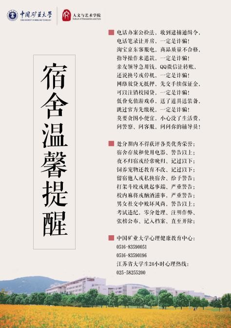 近日,我校积极开展有关预防网络诈骗的宣传活动。为提高无码av 同学们预防网络诈骗的警惕性,同时倡导住宿生在宿舍安全用电,无码av 大学生心理自助中心积极响应学院号召,在过去两周收集整理了“警惕诈骗,安全用电”的相关知识,将其设计制作成“宿舍温馨提醒”海报,并于3月19日在学院各个宿舍楼进行了张贴活动。确保学院每一位同学都能注意到网络诈骗的危害性,提高警惕,不给不法分子可乘之机。同时,加强学生的安全防范意识,为构建无码av 大学生健康安全的校园生活出一份力!