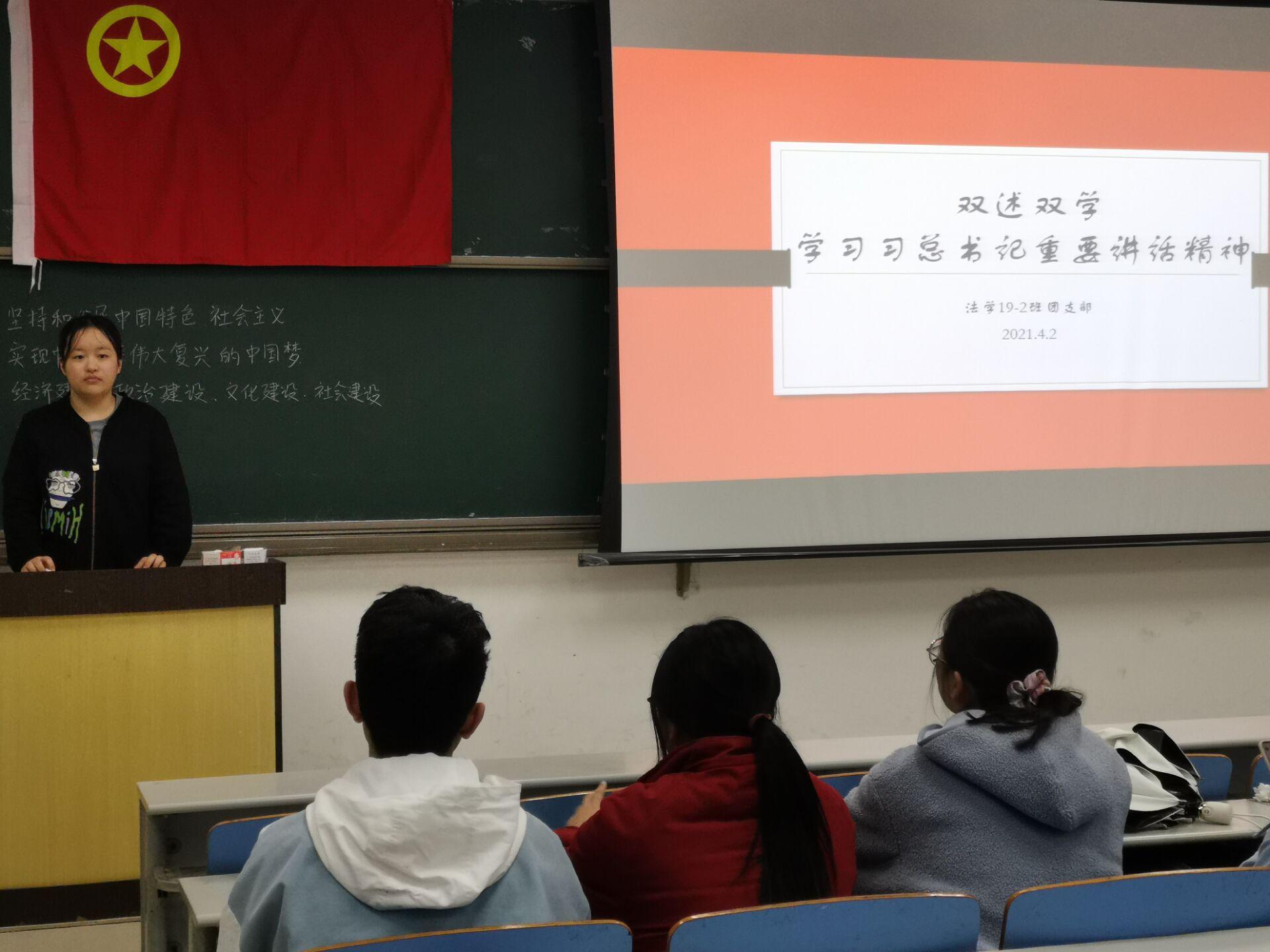法学19-2班团支部于4月2日晚20时在博一举办了“双述双学”主题团日活动。本次活动由团支书李雅璇主持,法学19-2班团支部成员参加。