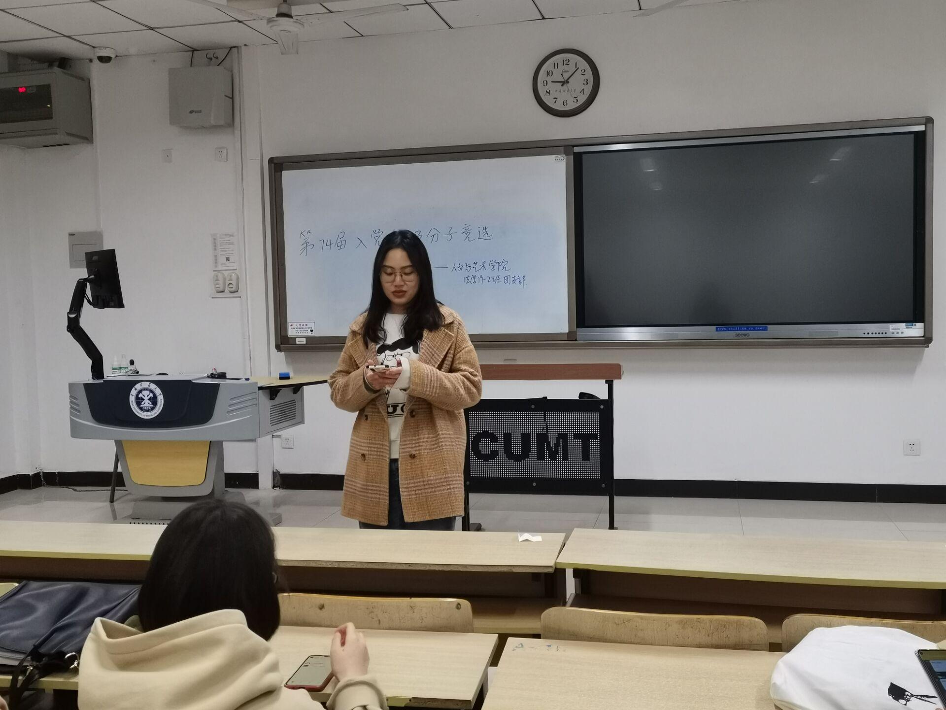首先由李雅璇同学宣布评选规则,同学们自愿报名并进行竞选演讲。随后由同学们进行投票。本次活动共评选出入党积极分子四名,推荐票数超过应到会人数的1/2。 适逢建党一百周年,同学们将积极学习党的知识,跟随党的领导,为加入中国共产党做准备。