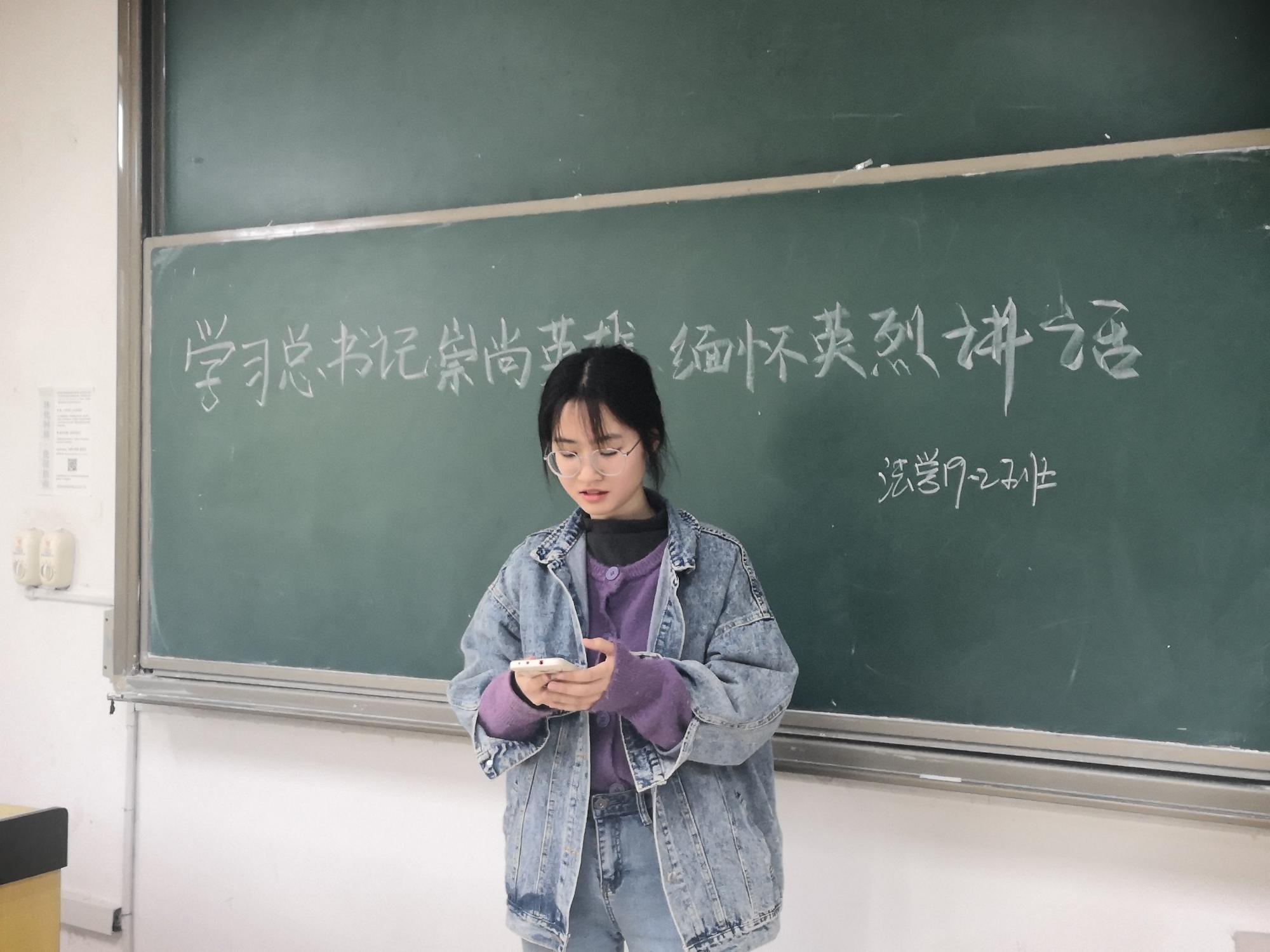 法学19-2班团支部于4月22日下午6时博一A302开展了“学习习近平总书记崇尚英雄,缅怀英烈讲话”自主团日活动。本次活动由团支书李雅璇主持,法学19-2班团支部全体成员参加。