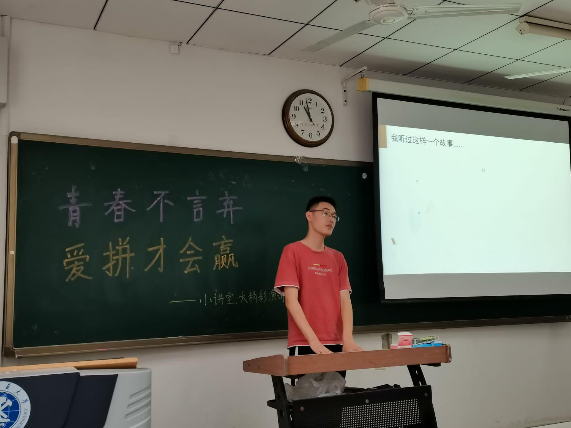第四位是来自体育学院19级的一名足球运动员。她的演讲与其他几位都有所不同。向大家讲述了原本一心盼着自己是艺术生阴差阳错的成为一名体育生,在PPT上她展现出自己小时候学习过程点点滴滴。回忆起与朋友老师们在一起训练的美好时光。感悟出人生当中朋友的重要性,以及懂得感恩老师教导。最后恭喜这位同学荣获最佳分享奖。