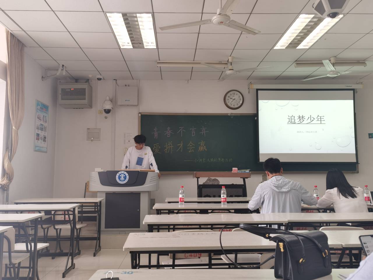 青春不言弃,松下幸之助,中国女排,永不放弃。最后一位同学讲述自己的高考经历,及时调整心态再战高考。路还很长可以慢慢走,不要放弃不要过于懒散,去实现自己的目标才能青春不言弃。找出演讲中的自己,从另一种角度看问题。最后恭喜这位同学荣获内容丰富奖。