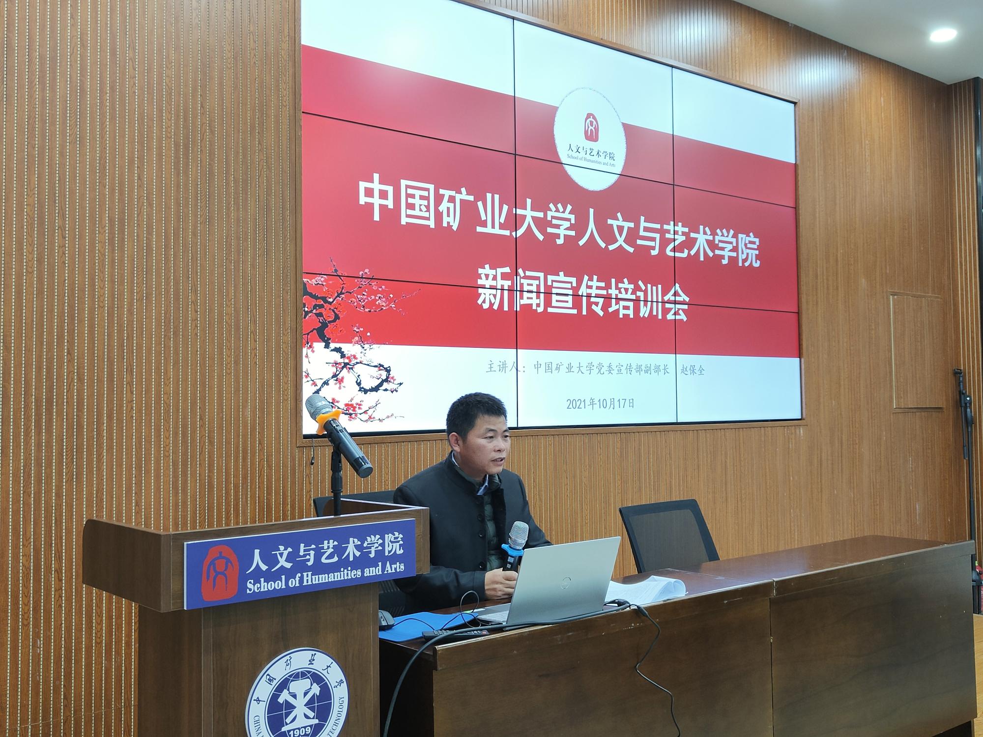 党委宣传部副部长赵保全主讲,相关学生新闻工作者全体参与。