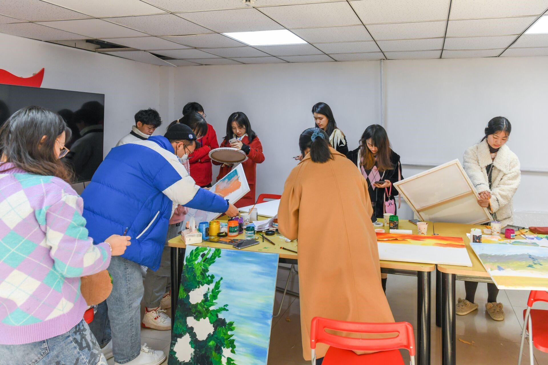美术系的研究生参与其中,给予到场的同学亲切指导。活动当天,工作人员组织参赛人员签到并领取绘画材料,来自各院的同学们浸润于艺术创作的宁静与美好中,尽情发挥想象力与创造力,将所思所想流于画上,以浓墨重彩墨染风韵,以多重色彩冲撞相融,展现美感与创意。在创作过程中本科生与研究生进行了深刻交流,画艺切磋中作品展现得更加丰富出彩。活动结束后,专业指导老师进行评奖,优秀作品被裱挂于竹三宿舍长廊。一幅幅各具特色的作品,为竹苑宿舍楼增添色彩,让单调阴沉的宿舍长廊变得多彩明亮起来,给同学们带来视觉与心灵双重美感。
