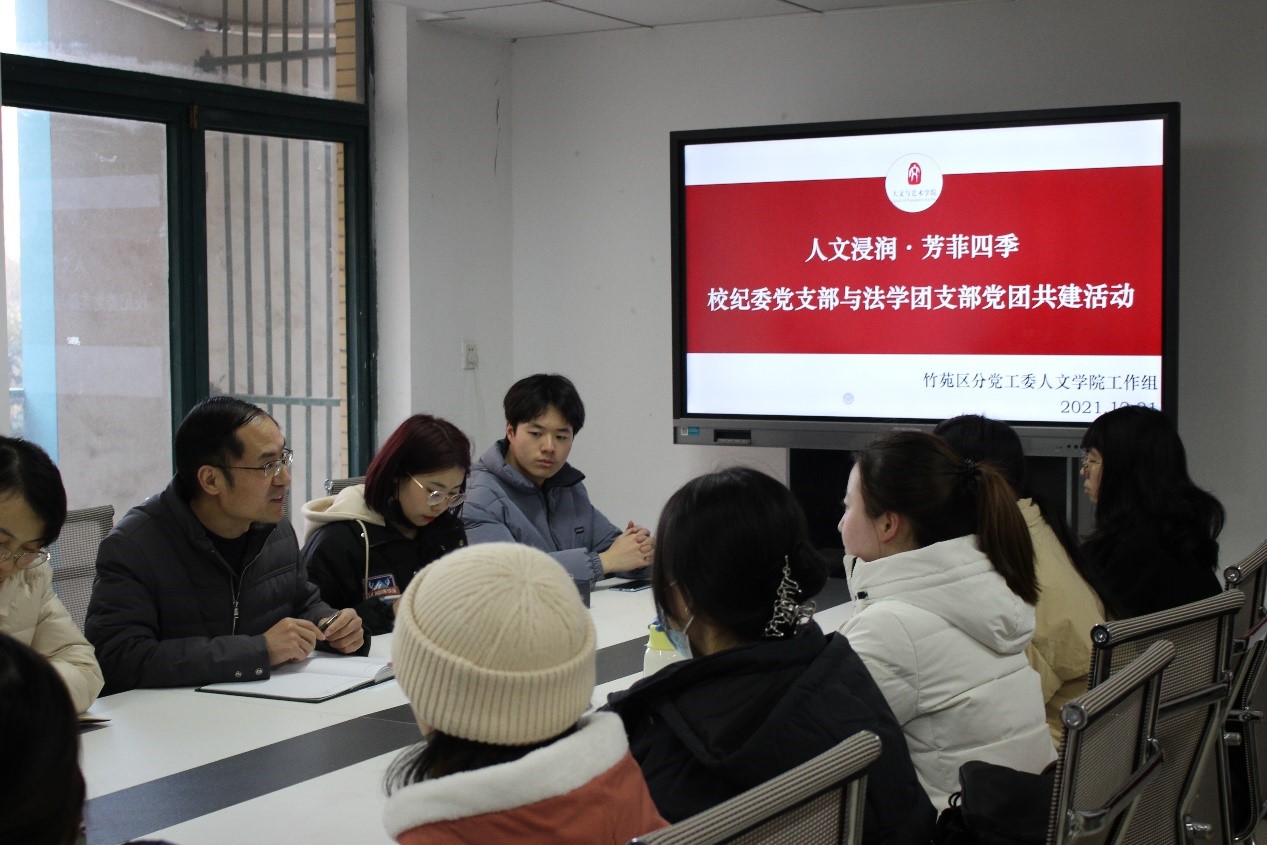 于竹三党工委会议室开展校纪委党支部与法学团支部党团共建活动,学校纪委副书记李江涛老师、监督检查室副主任刘燕老师受邀参加了活动,法学2020-3班学生参加了座谈会。