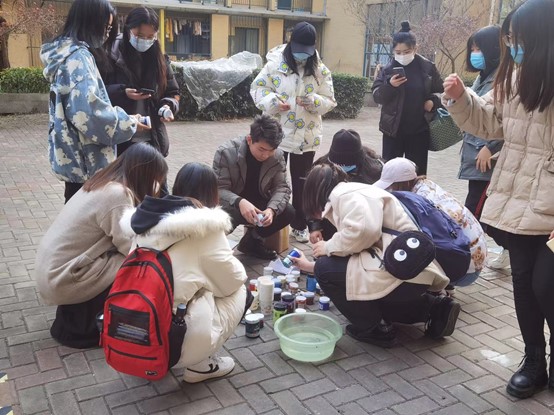 活动结束后,杨安华老师与同学们合影留念。同时一幅幅各具特色的井盖绘画作品,为竹三宿舍楼增添色彩,让单调阴沉的井盖变得多彩明亮起来,给同学们带来视觉与心灵双重美感。