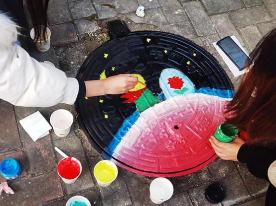 活动当天,参与的同学签到并领取绘画材料,活动中同学们浸润艺术创作的宁静与美好中,尽情发挥想象力与创造力,将所思所想流于画上,以浓墨重彩墨染风韵,以多重色彩冲撞相融,展现美感与创意。在创作过程中本科生与研究生进行了深刻交流,画艺切磋中将井盖作品画得丰富多彩。