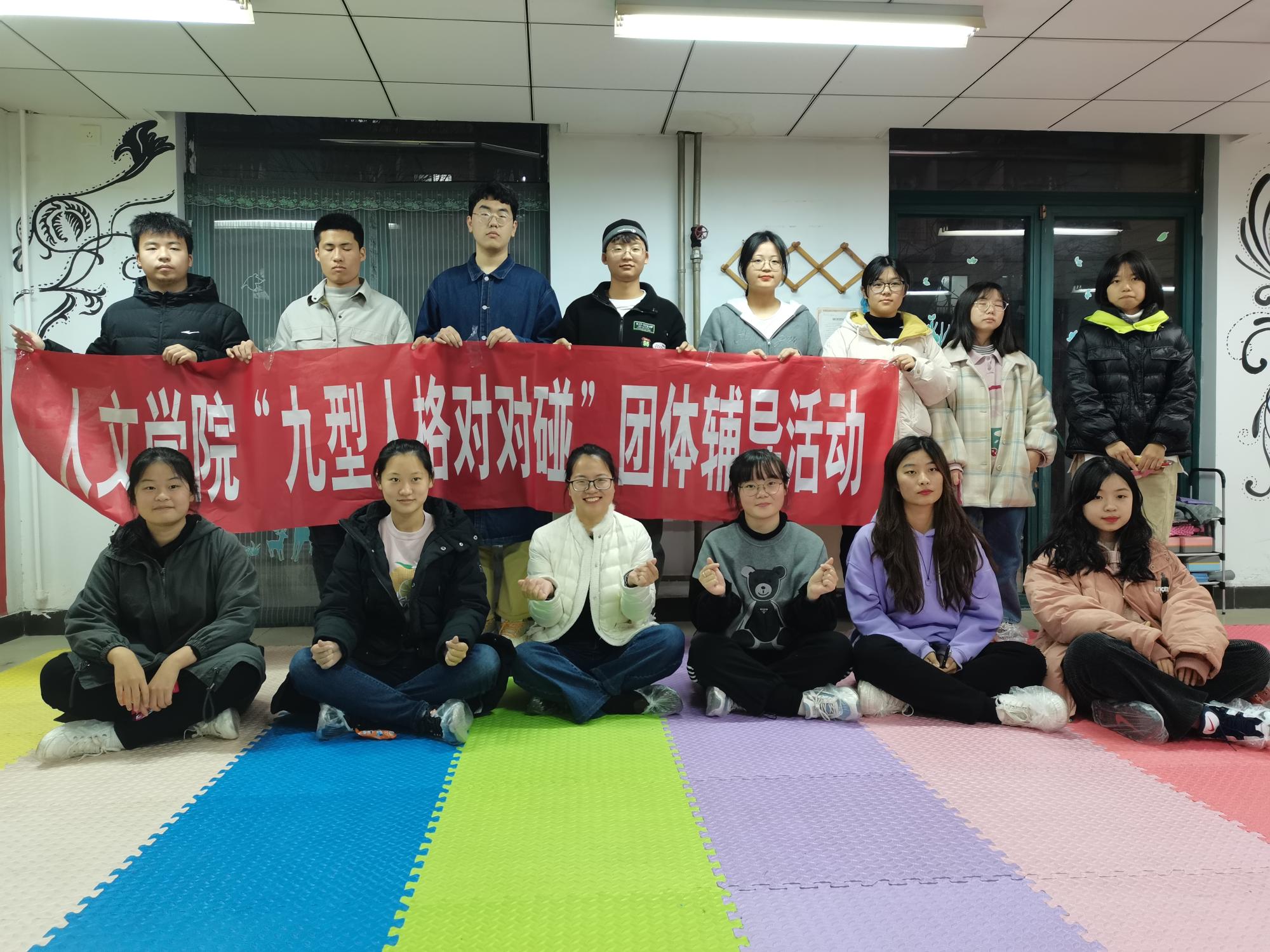 12月22日,人文学院在竹苑三号楼舞蹈室开展“九型人格对对碰”活动,活动由李玉雪老师主导召开,大学生心理自助成员和各班心理委员踊跃参加。