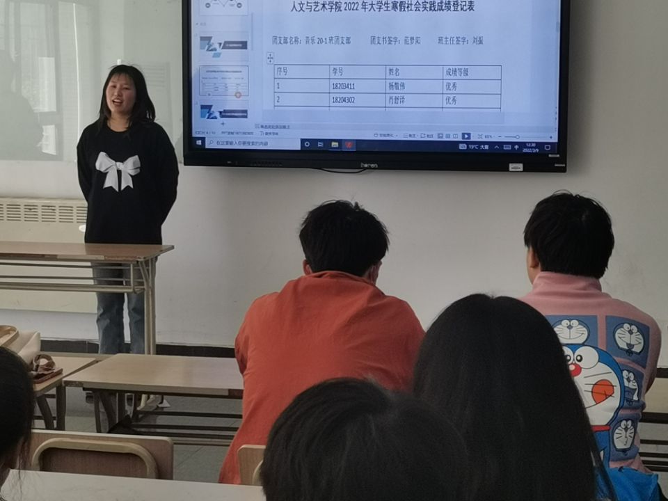 音乐20-1班在线下开展了主题为“寒假归来话实践”的社会实践交流会,参与实践的同学们分享了他们的寒假社会实践经历。本次交流会由团支书范梦阳组织,团支部全体成员参与,无码av