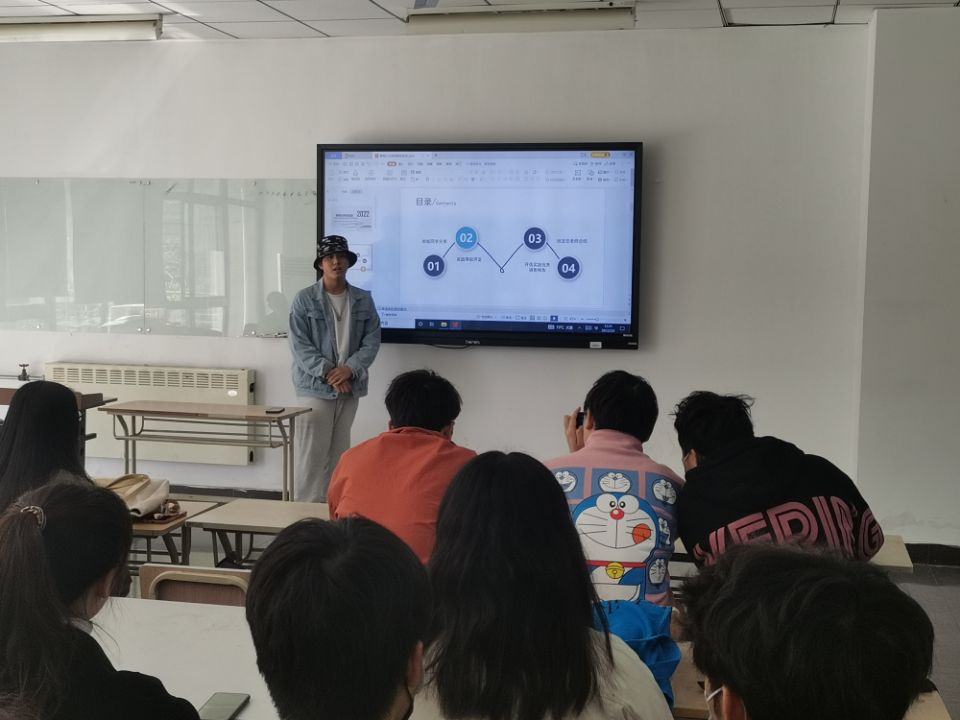 交流会上,同学们轮流介绍了自己的寒假实践项目,包括实践原因、具体过程以及感想总结等。其中,杨敬伟同学分享了他在家乡阜阳进行志愿者实践的经历,辅助医生以及社区服务员测量体温查健康码。这次特殊的经历让他有对生活了不一样的感悟。杨敬伟、肖舒泽同学各自报名了家乡社区的疫情防控志愿者活动,参与基层防控工作,协助街道网格员和其他志愿者为社区人员测量体温、维持秩序,以及帮助登记核酸检测信息,圆满完成了社会实践任务。最后,由团支书范梦阳对社会实践的益处进行了总结,班主任刘振老师做最后的点评。