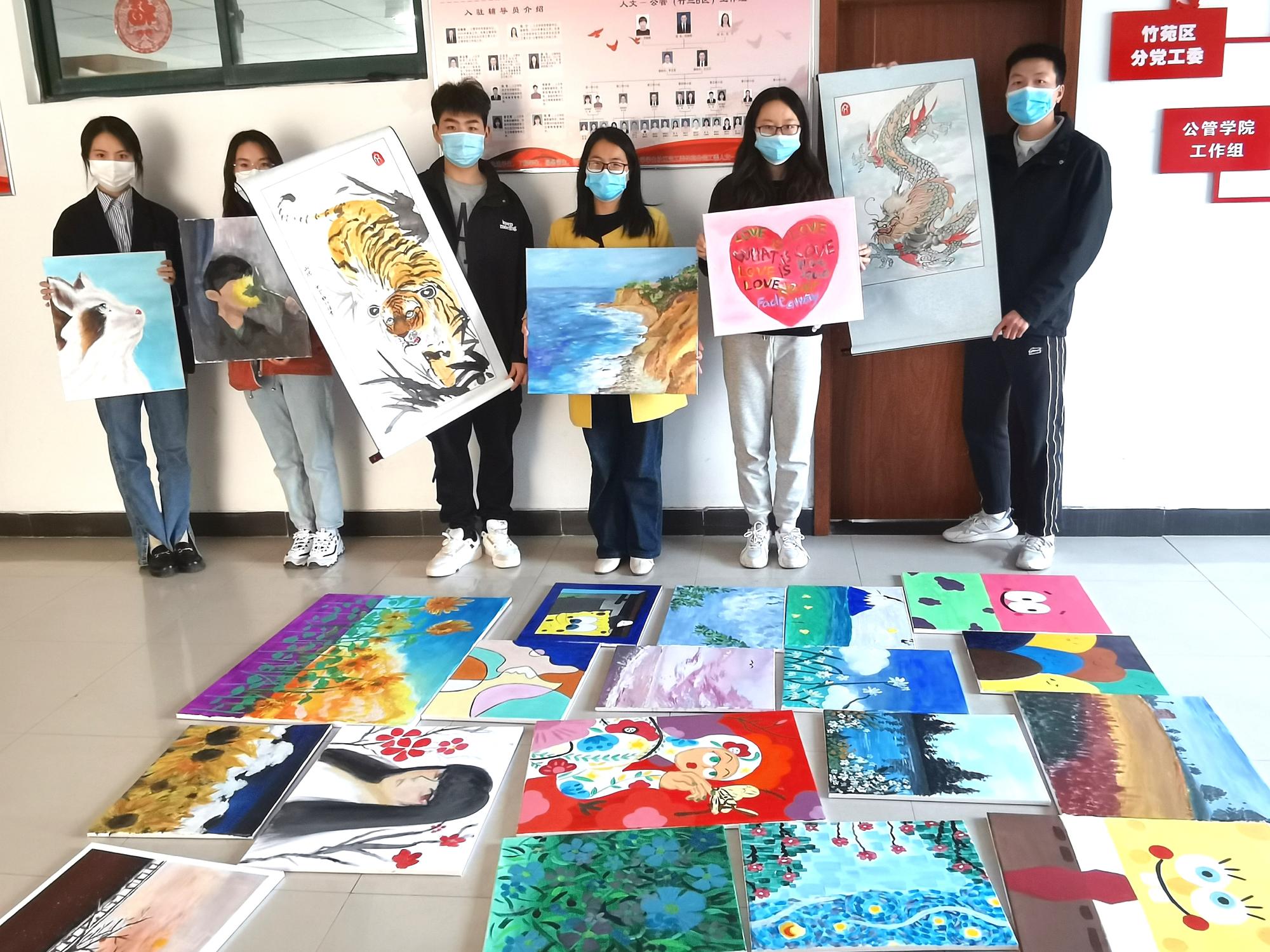 在学生社区党工委竹苑三号楼举办“画笔描绘生活,色彩点缀宿舍”绘画活动。