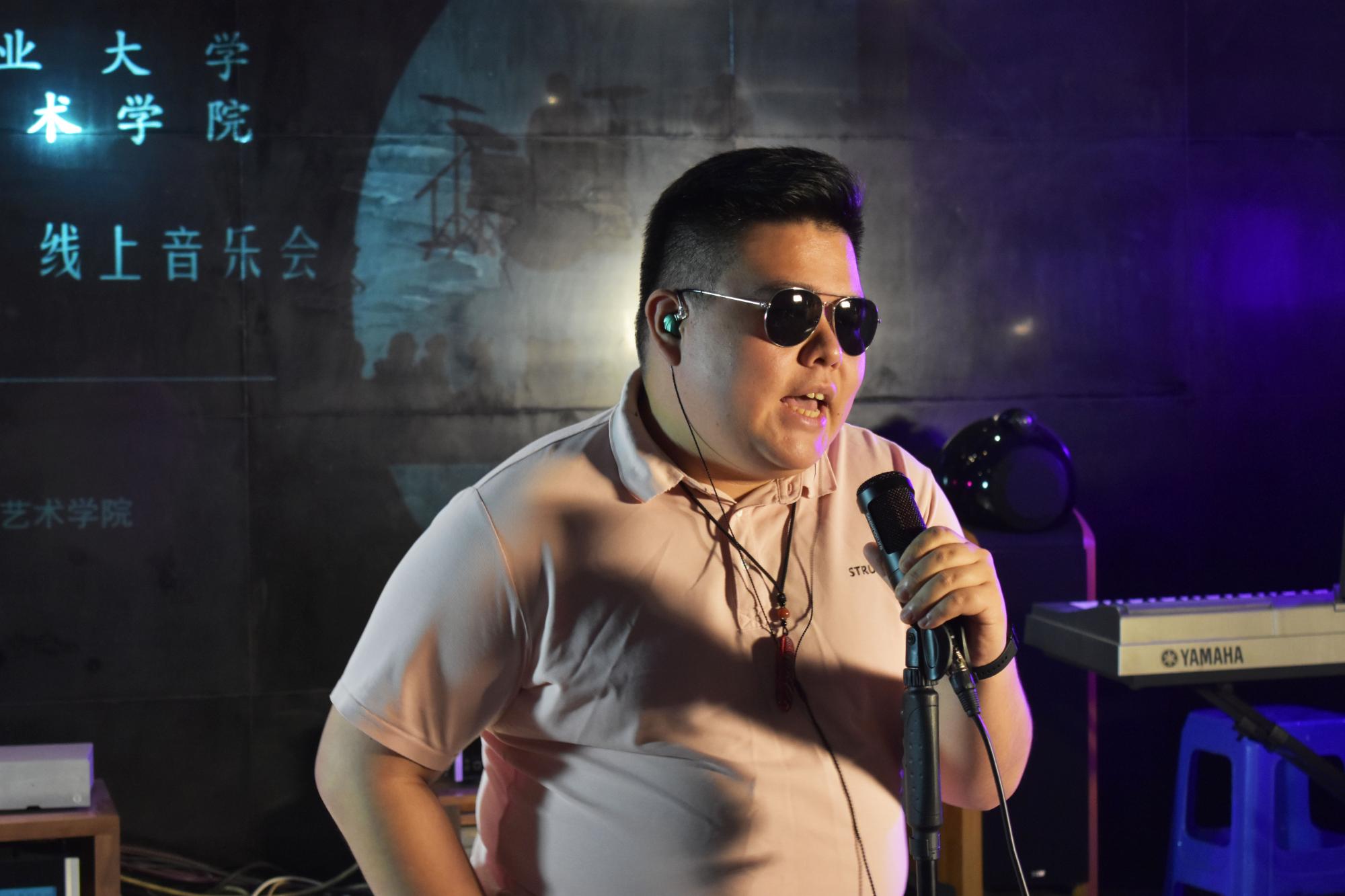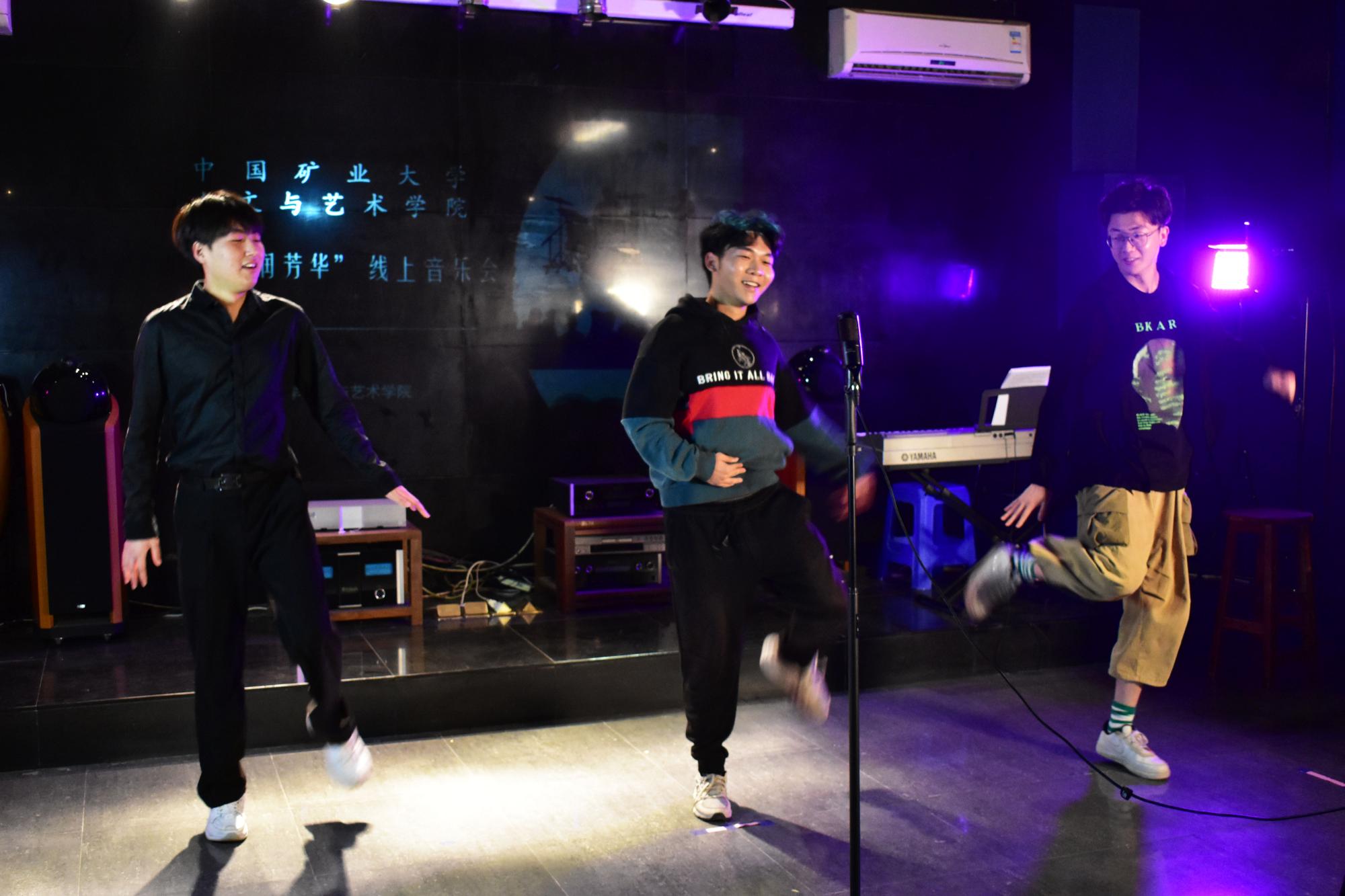 在互动点歌环节里,观众们选出了《多远都要在一起》和《喜欢你》两首歌。王思源同学连唱两首,将现场推向高潮。海天音乐社的张新健同学以《灰色轨迹》继续点燃这这份热度。滕玥同学独唱的《永不失联的爱》以可以媲美原唱的水准牵引着听众的心绪;在诗歌朗诵《我看见》中,方瑶、李梦梦、吕玥蓉、闫思洁、付秋月五位同学声情并茂地歌颂了疫情中每一个付出者的无私奉献,每一次奋勇拼搏的生死抢救,每一场舍生忘死的战疫现场;杨淼同学的独唱《阿楚姑娘》,继续弥漫着哀而不伤的情绪;刘成奥同学的二胡独奏《仙剑奇缘》潇洒不羁、引人入胜。汪星廷、罗筱倩、曾瑾瑜同学的《飞云之下》别出心裁,独特的说唱为舞台增添活力。音乐系研究生刘世学作为压轴,带来个人独唱《少年中国说》,激昂慷慨,振奋人心的旋律,诉说着中国少年的热血与初心。