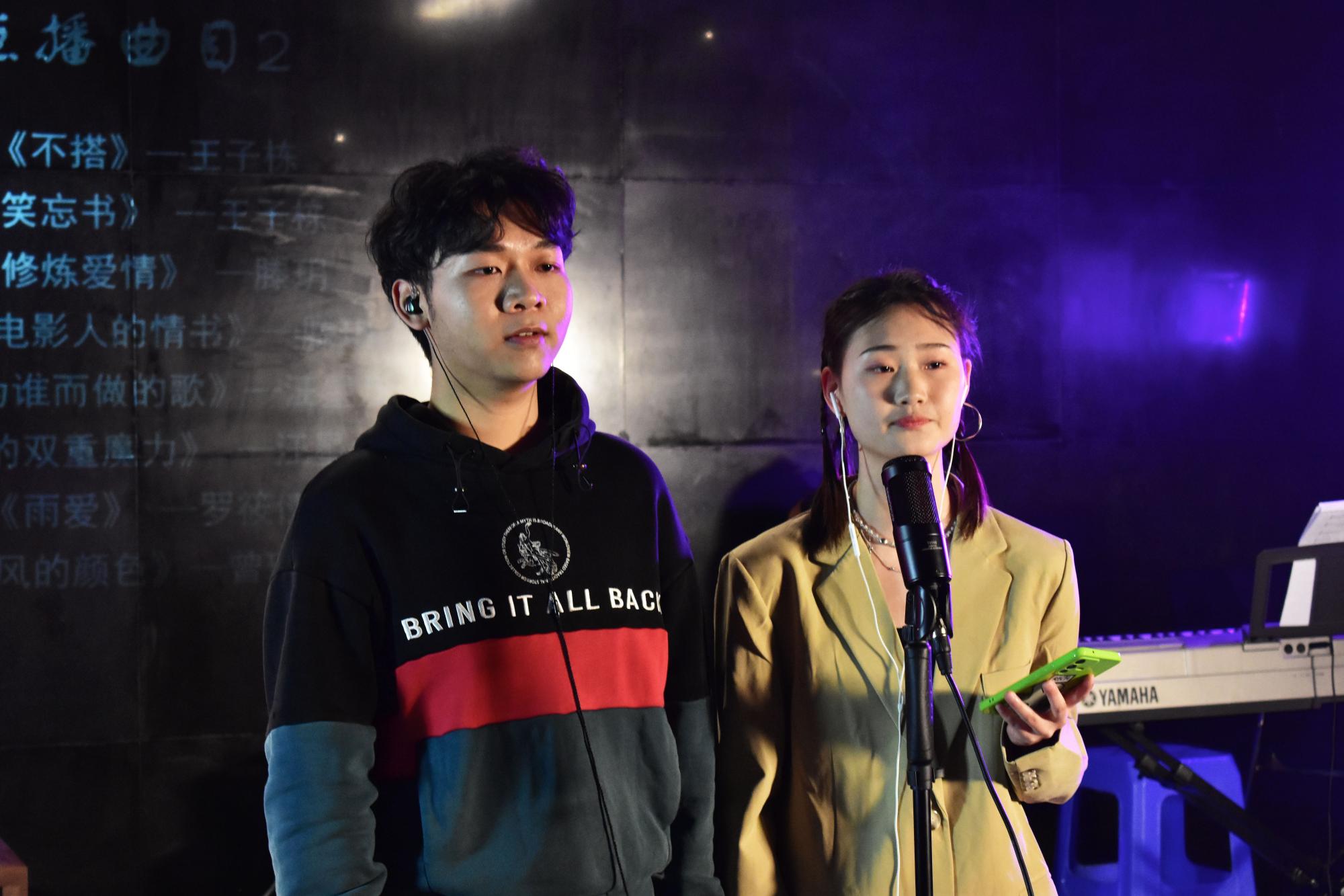 学生和海天音乐社、橘子乐队的同学积极参演。独唱《孤勇者》拉开了音乐会的序幕,王子栋同学以深沉的声音勾勒了一个不惧困难、积极追梦的孤勇者形象,为本次音乐拉开了精彩的序幕;在春天里,听《春风十里》,流畅的旋律仿佛清新的春风拂面,使听众的情感渐渐升温;来自19级的赵庆哲同学独唱《你是人间四月天》,传递了对生活的美好祝愿;刘志贤、张筱同学的诗歌朗诵《当我摘下口罩》表达了对疫情早日结束的期待,用真诚美妙的语言,唤醒人们对正常生活秩序的渴望;王文倩、王思源同学带来了歌曲《人世间》,低诉的歌声伴着钢琴响起,温情而深沉。诠释了人生起伏但仍有生机热望的情感。