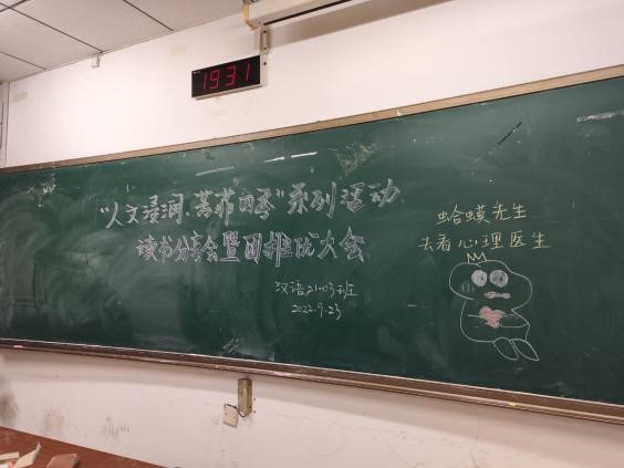 2021级汉语言3班在博四C307开展了“我与班级共读书”读书会活动,班长赵一鸣和团支书曹铭鑫负责主持,班级全体成员线下参与,班主任韩文羽老师于线上全程参与了活动。