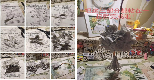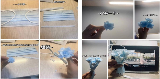 志愿者们充分发挥想象力,对口罩、饮料瓶、纸张等废弃物进行适当加工,变废为宝,制作出生动可爱、样式新奇的手工艺品,在活动群中分享制作过程及创新心得,之后在宿舍中进行成品交换,充分领会绿色创新的魅力。