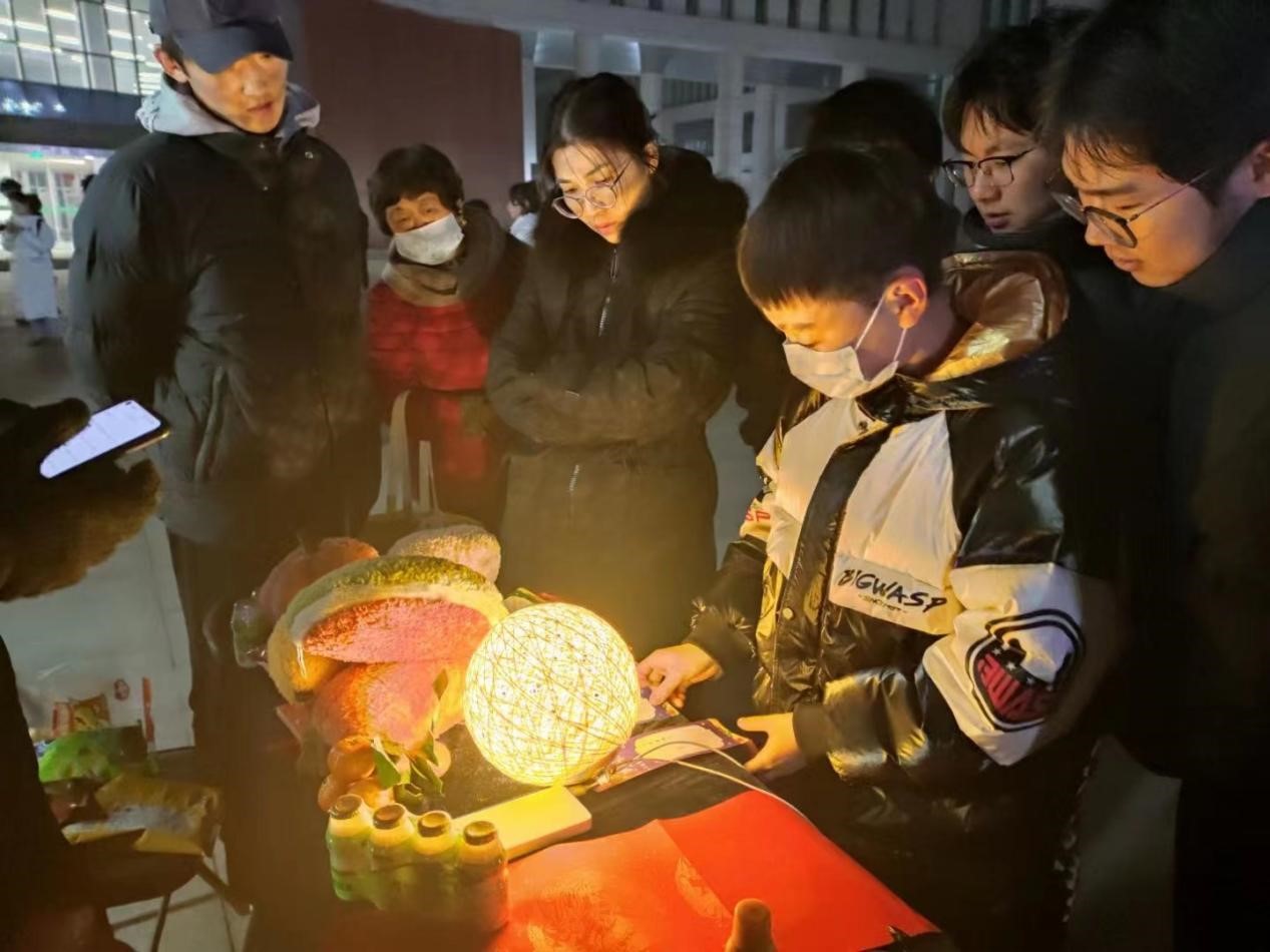 灯展活动在力行楼前进行,各专业学生发挥所长,将灯笼制作与专业知识相结合,作品融合传统技艺与现代科技,增添活动趣味,带来一场极富传统文化意趣之旅。灯展现场喜庆洋溢,形状各异、精美绝伦的灯笼散发出暖黄色的光芒,与黑夜相映衬,营造出浓浓的新年氛围。