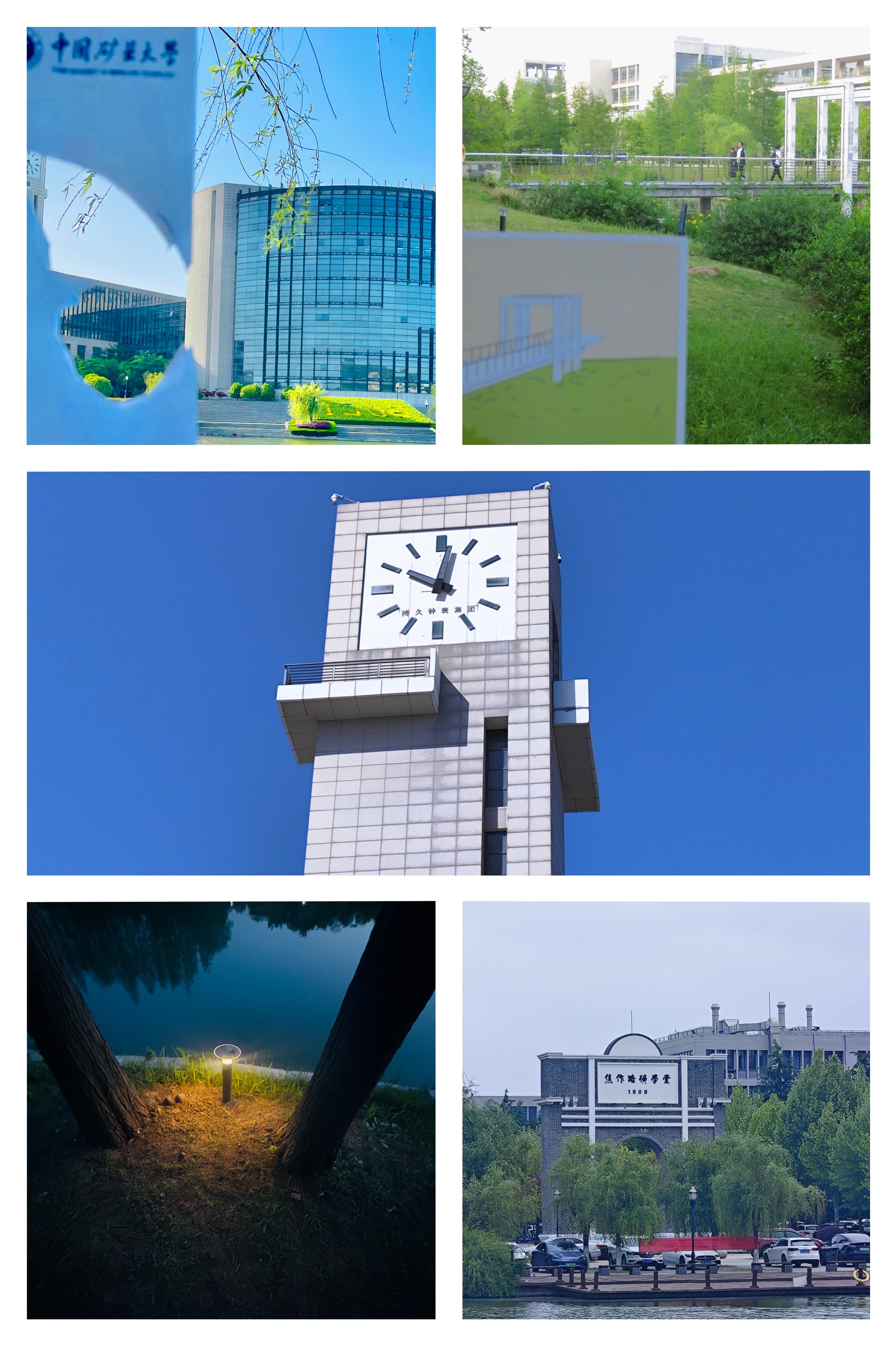 活动过程中,参赛者随机抽取由主办方提供的明信片或者镂空模板,选取矿大地标性建筑进行摄影打卡,要求明信片或模板入镜,进行创意构图与拍摄,可对其进行剪裁、绘画等其他创作,最后以个人为单位提交单幅或者组图。作品提交后,工作人员坚持公平公正公开的原则,根据主题性、技术性、创造力、表现力四个标准对所提交的作品进行评分。