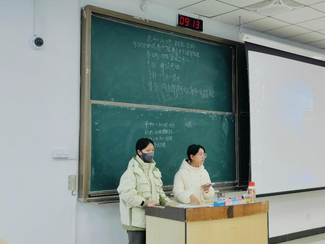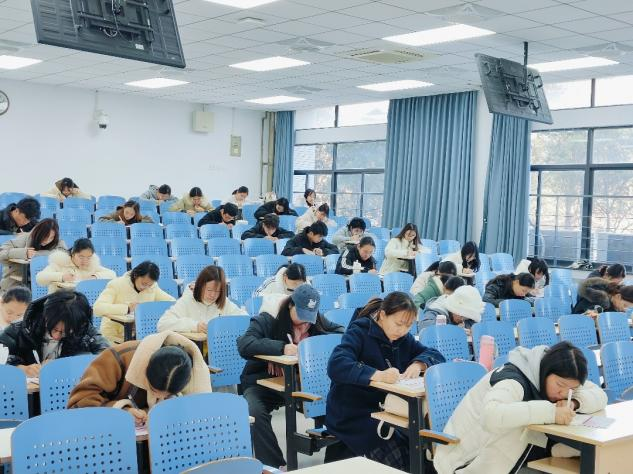 上午9点,考生按时到达指定教室参加考试。在模拟考试前,监考人员引导考生签到,并在黑板标注考试相关的时间节点,向考生宣读注意事项,随后分发试卷,确保考试有序进行;在秩序井然的考试环境下,考生们认真答题;考后,由学习部发布考试答案,并安排讲座为考生们进行试卷答疑。