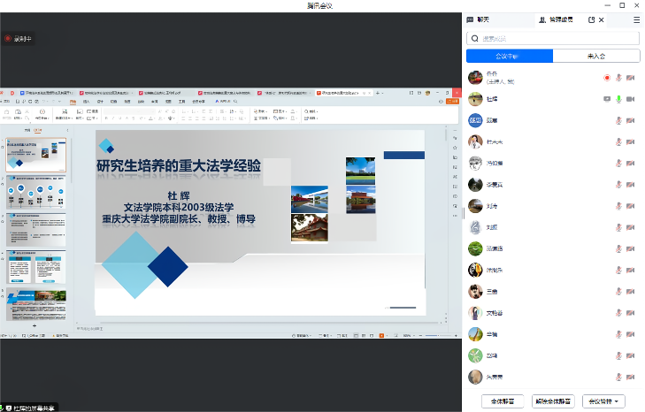 举行硕士导师在线交流培训会。本次交流培训会邀请重庆大学法学院副院长杜辉教授主讲,汤道路副院长主持。