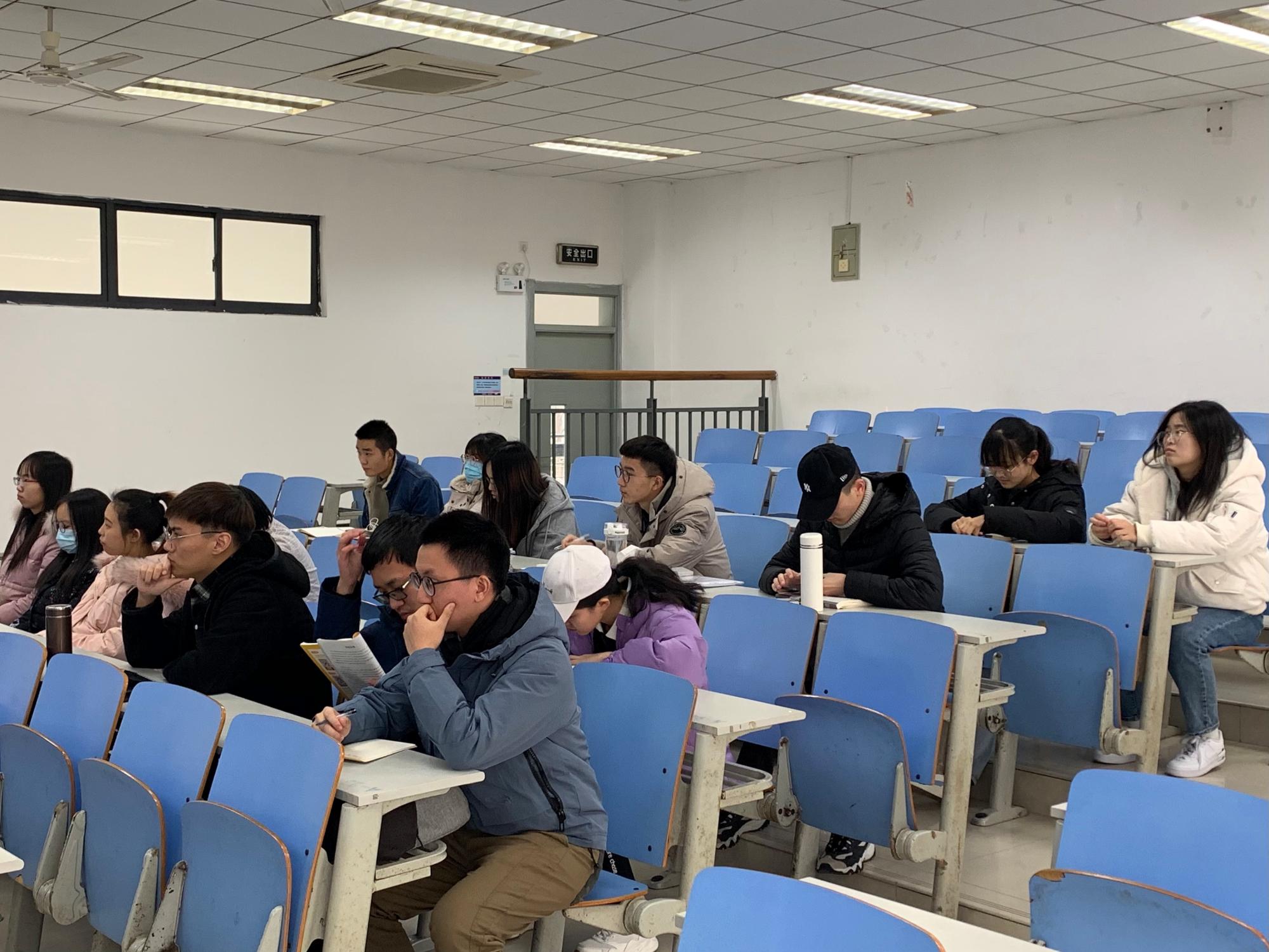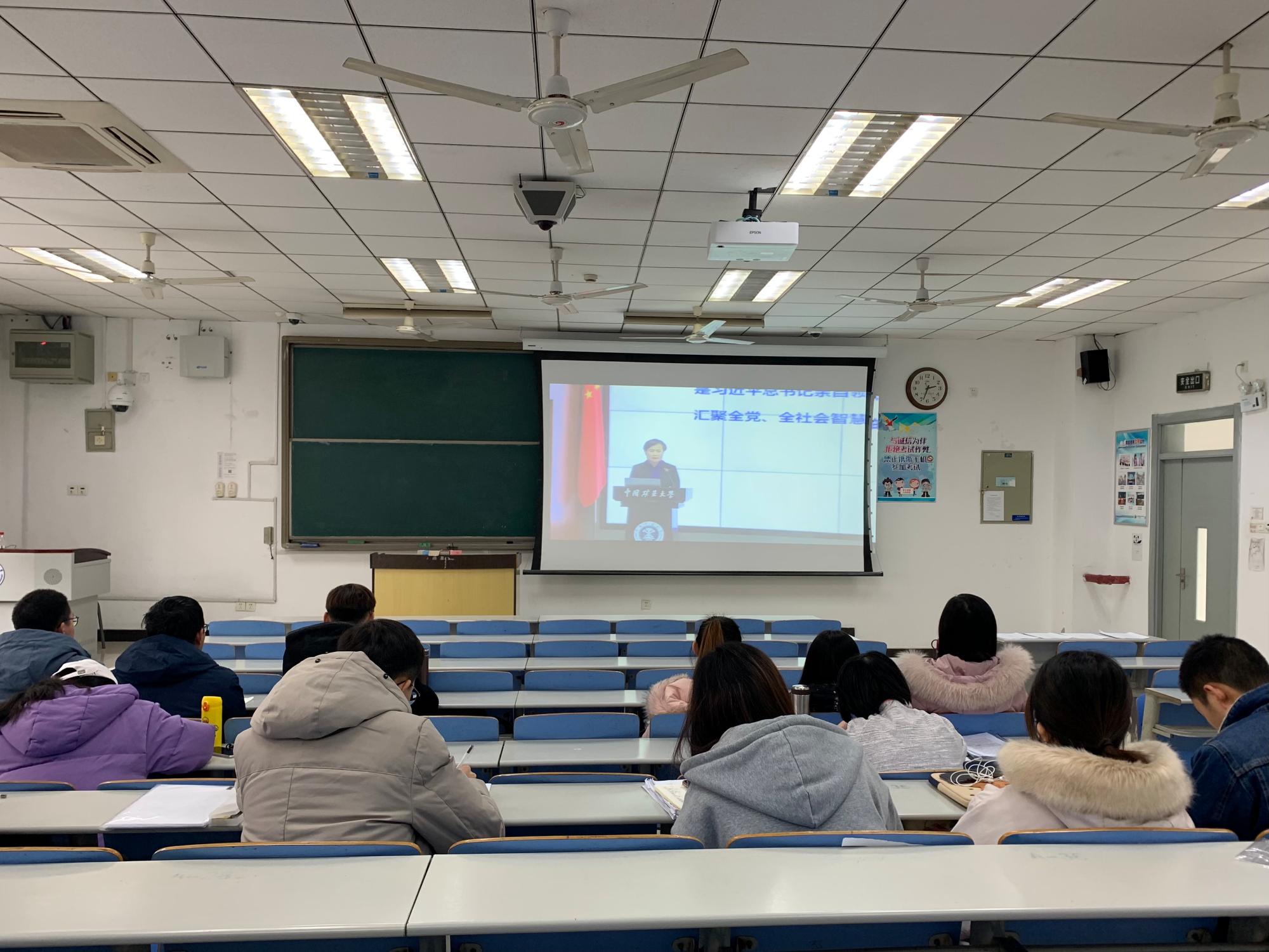 12月13日下午,无码av 党员工作站在博学一楼B202开展学习贯彻党的十九届五中全会精神专题党课,学院全体预备党员通过网络收看直播,主会场由校党委刘波书记主持并讲话。