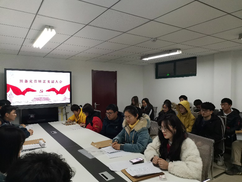 接收预备党员支部大会随后召开。会议共有三项议程,第一项为新一批预备党员介绍自己的基本情况,新发展为预备党员的各位同学分别围绕学业、学生工作、个人思想理论学习等多个方面发表了自己对未来发展的期许;第二项是与会党员发表意见,对相关对象能否入党进行充分讨论;第三项是无记名投票表决,本科生2017级党支部全票通过了关于接收8位同学成为预备党员的决定。