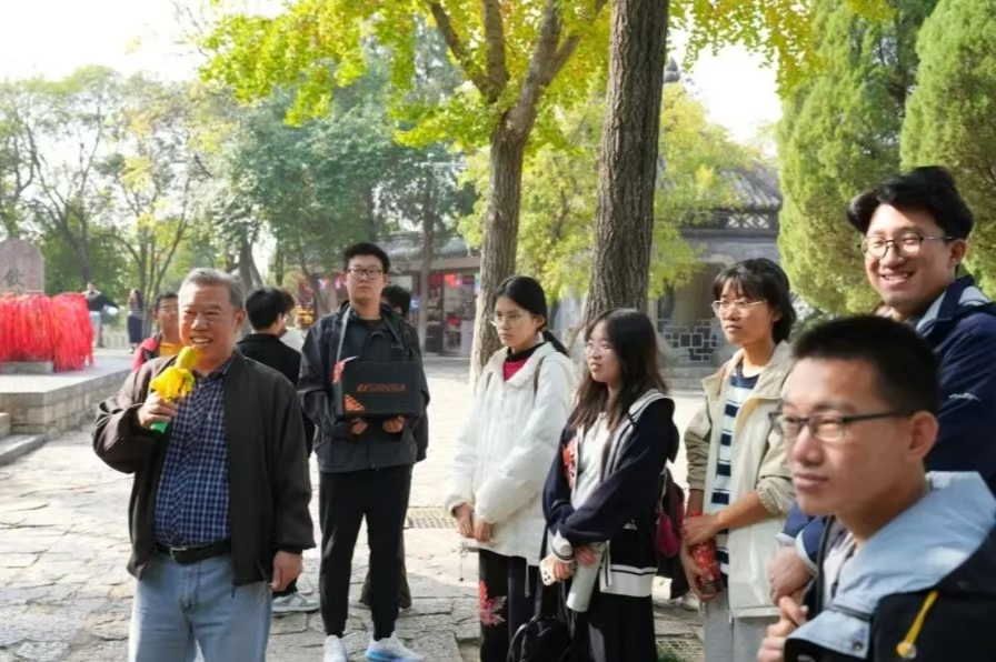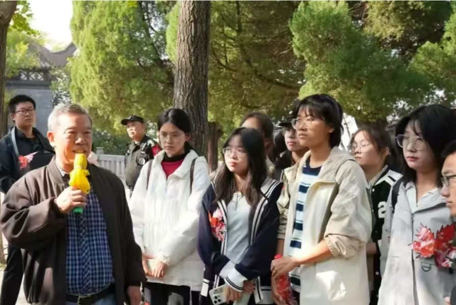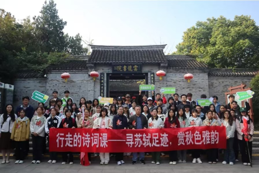 师生们共同参观了黄茅冈、云龙书院、东坡石床、放鹤亭等景点。期间,管仁福老师和景区讲解员结合苏轼诗词,为大家介绍了景点背后的历史故事,引导大家探寻苏轼在徐州的独特印记。大家细细聆听讲解,近距离体味精神文化遗韵,并在放鹤亭前朗诵《放鹤亭记》,至观景台合影留念。