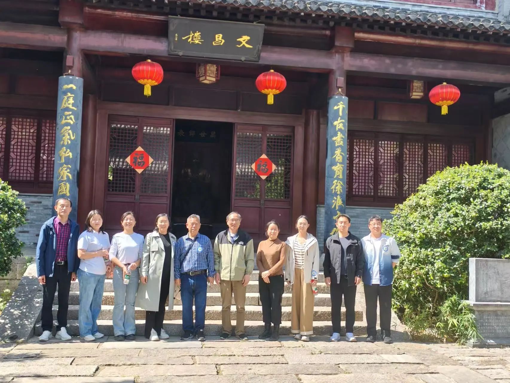 教师在文昌楼前与张长通主任、施婧副主任合影