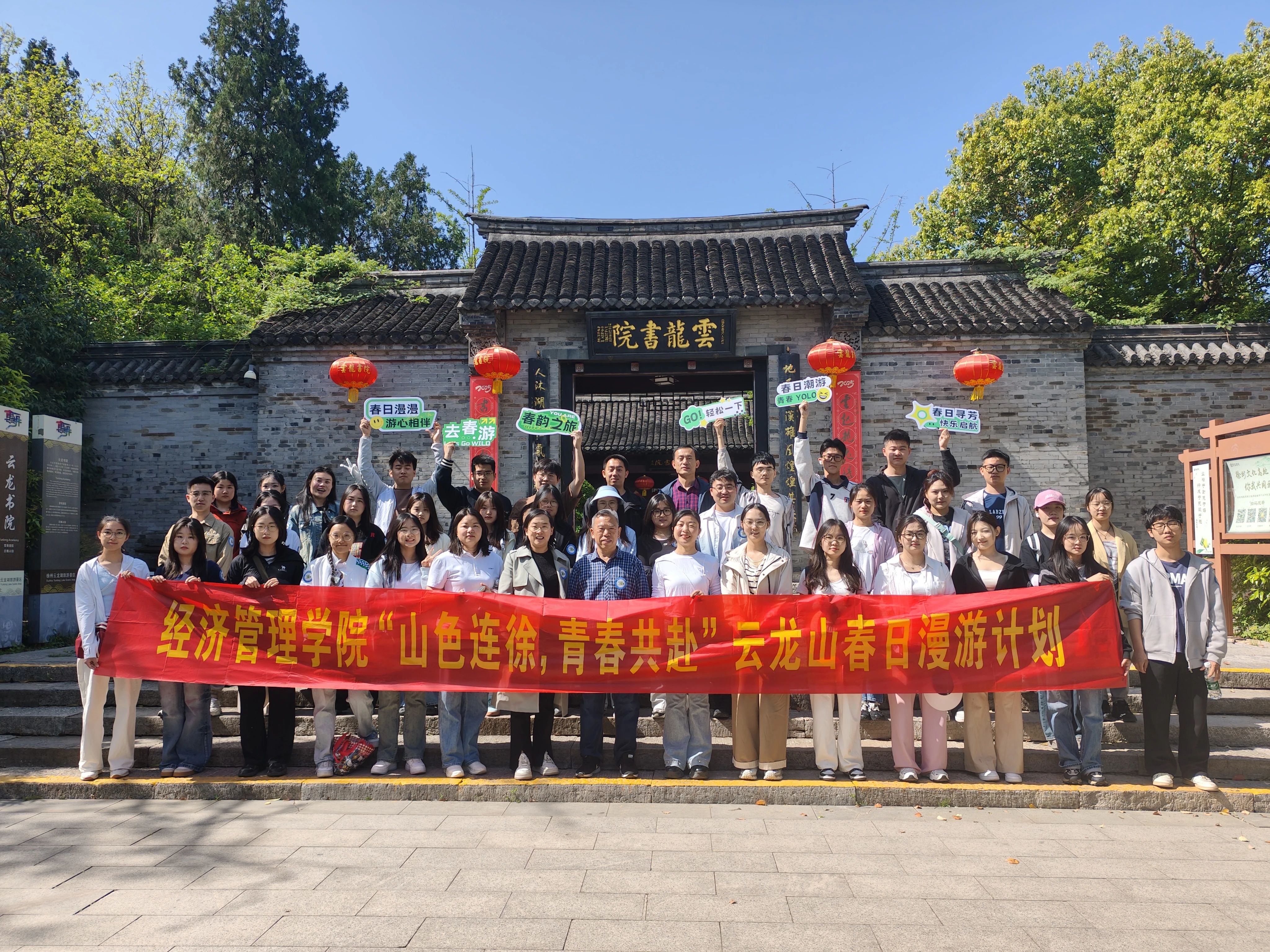 苏轼研究院院长管仁福教授受邀参加由矿大经济管理学院主办的“山色连徐,青春共赴”——云龙山春日漫游活动。本次活动参与人员主要有经管学院党委副书记刘宁、学工办主任周红肖、24级专职辅导员、学生骨干、以及矿大苏轼研究院的两名研究生。师生们趁春色正好,循苏轼足迹探访徐州历史文化著名景观。